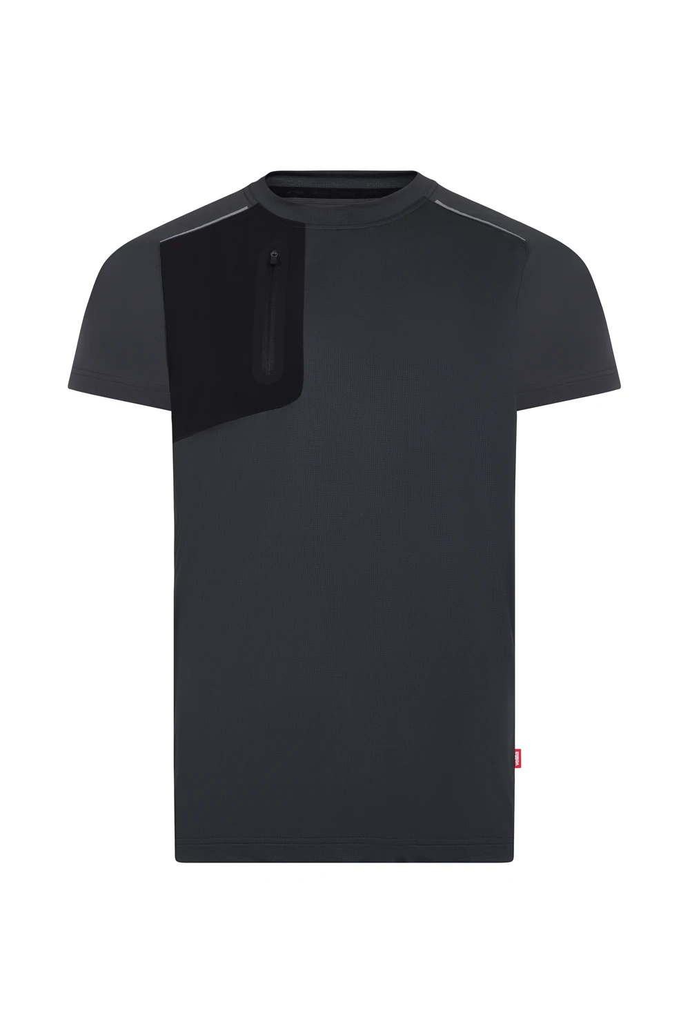 Bolsillo en pecho en tejido secundario, con cremallera termosellada y tirador
